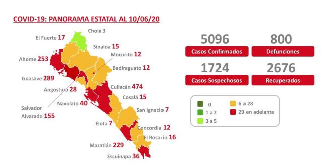 Decesos: 800 (26 nuevas: Culiacán 8, Ahome 8, Mazatlán 4, Salvador Alvarado 1, Concordia 1, Mocorito 1, Angostura 1, El Fuerte 1, Navolato 1)