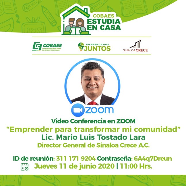 *En el marco del programa, «Emprendamos juntos», la familia Cobaes participó hoy en la videoconferencia «Emprender para transformar mi comunidad» el director general de Sinaloa Crece A.C.