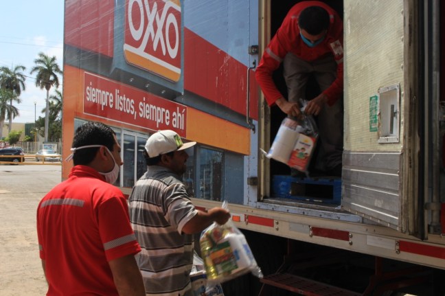 Navolato, Sinaloa. En solidaridad con las familias más vulnerables a la emergencia sanitaria por el COVID-19, la empresa OXXO, a través del Coordinador de la Zona Centro, Efrén Gerardo Sánchez, realizó otra importante donación al Municipio de Navolato, y en esta ocasión hizo entrega de 200 despensas al Sistema DIF que preside la Sra. María Martha Zazueta de Gutiérrez.