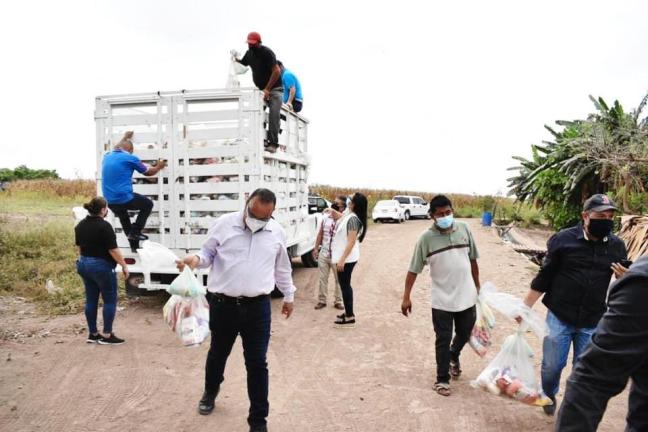 Por la epidemia de COVID-19, el Ayuntamiento de Elota y la Secretaría de Desarrollo Social del Estado realizan la primera entrega de mil despensas alimenticias; son siete poblados los beneficiados