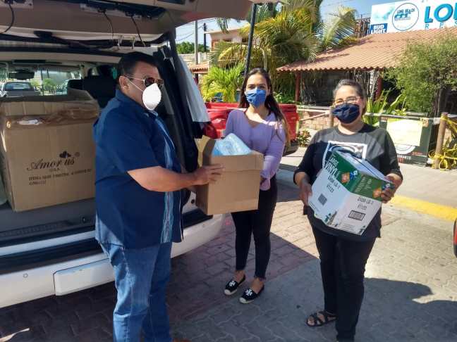 El alcalde navolatense aprovechó para entregar a los propietarios de los restaurantes, material preventivo que será utilizado cuando se reinicie la atención al público, (cubre bocas, gel antibacterial, guantes y cofias). Natalia Hernández, presidenta de los negocios del Muelle 33 y María Guadalupe Torres, representante de la Unión de Restauranteros de Altata recibieron estos apoyos.
