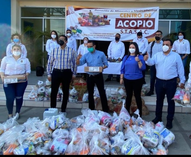 Culiacán, Sin. El presidente del PRI Sinaloa, Jesús Valdés Palazuelos, en apoyo a las familias afectadas por el Covid 19, entregó en el centro de acopio del STASAC, productos alimenticios, medicamentos y equipo de protección de limpieza.