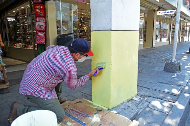 Personal del Departamento de Mercados siguió con los trabajos de retoque de pintura al exterior de este espacio público, mejorando así la apariencia de sus muros.