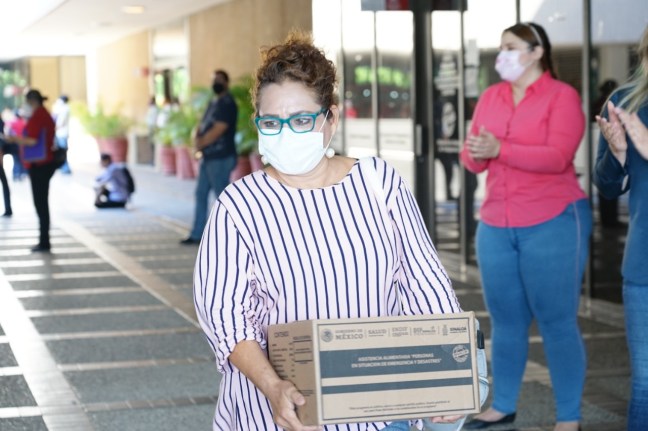 La entrega de despensas al grupo de empresarios y empresarias adheridos al programa Desarrollo Artesanal que impulsa la Secretaría de Economía, es un apoyo emergente derivado de la contingencia de la pandemia del Covid-19.