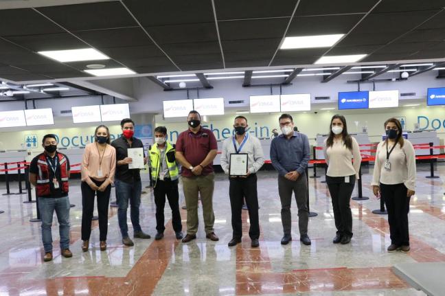 Culiacán, Sin. El Aeropuerto Internacional de Culiacán recibió del Secretario de Turismo de Sinaloa Óscar Pérez Barros, el Distintivo de Sanidad de Gobierno del Estado, avalado por el Consejo Mundial de Viajes y Turismo (WTTC, por sus siglas en inglés), por cumplir con los protocolos sanitarios, para protección de usuarios y colaboradores.