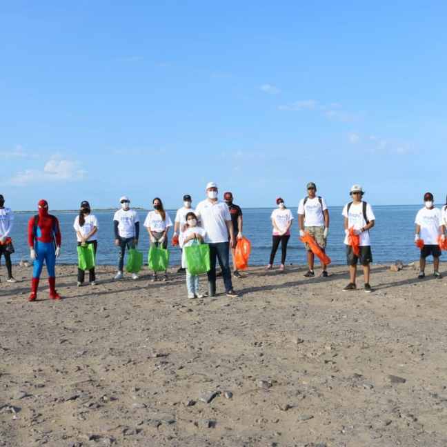 El Maviri, Ahome, Sinaloa. Niños, jóvenes y adultos hicieron equipo este domingo en la limpieza de playa El Maviri para evitar que plásticos de un solo uso, colillas de cigarro y envases de vidrio llegaran al mar.