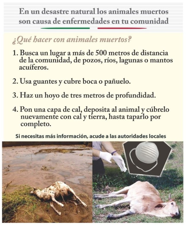 “Son riesgos que pueden dañar la salud o poner en peligro su vida. Nadie debe conducir vehículos por áreas inundadas y agua estancada, puesto que quince centímetros de agua pueden ocasionar que se pierda el control de un automóvil y la corriente de agua puede arrastrar el vehículo”, advirtió.
