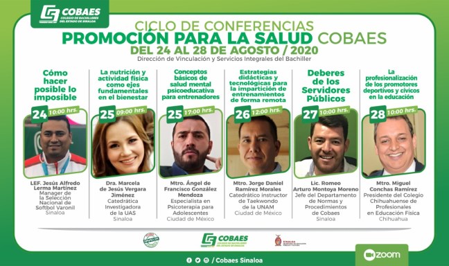 Con la participación de eminentes especialistas en las áreas de la educación y la cultura física, el Colegio de Bachilleres del Estado de Sinaloa efectuará de manera virtual, del 24 al 28 de agosto, el Ciclo de Conferencias, “Promoción para la Salud”.