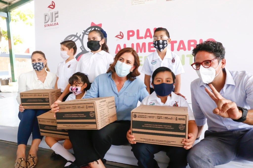 Culiacán, Sinaloa. La presidenta del Sistema DIF Sinaloa, Rosy Fuentes de Ordaz y el Secretario de Educación Pública, Juan Alfonso Mejía, lanzan el Plan Alimentario Emergente, con el cual, se apoyará con más de 80 mil despensas a 40 mil 589 alumnos de nivel básico que formaban parte del Programa de Tiempo Completo.