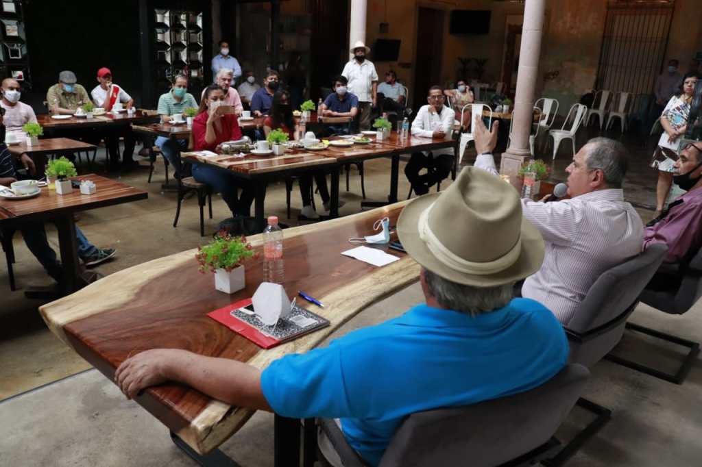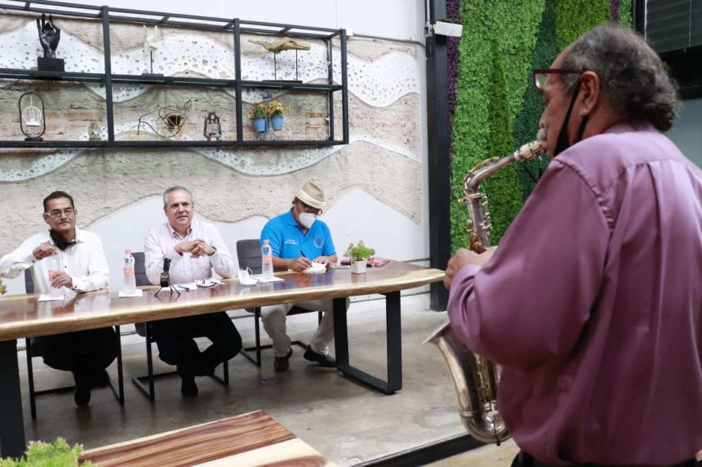 Gerardo Vargas, sostuvo una reunión con integrantes del Sindicato de Creadores y Artistas Autónomos de Sinaloa y el Sindicato de Fotógrafos Sinaloenses, representados por el escritor Víctor Luna y el artista Guillermo Arámburo, respectivamente, quienes lo recibieron al son de las notas musicales del saxofón de don Pedro Álvarez.
