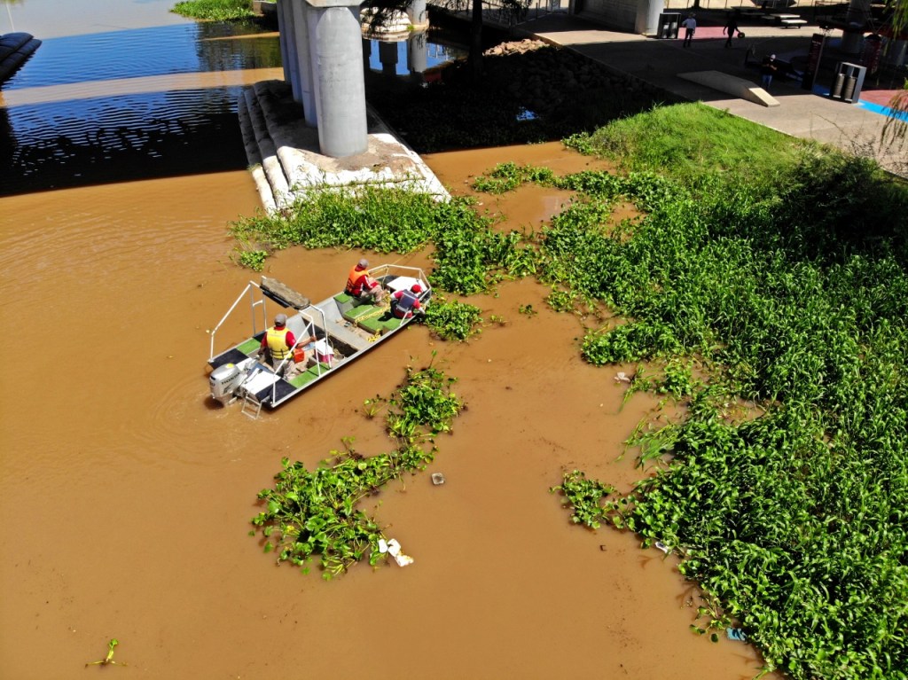 A través de las acciones preventivas realizadas por el Gobierno de Culiacán, se logró el retiro de 300 toneladas de la planta acuática que permanecía sobre una gran superficie de la presa.