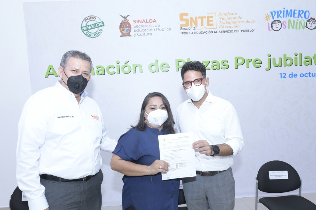 Culiacán, Sinaloa. Un total de 73 plazas pre jubilatorias de educación básica fueron entregadas este mediodía a igual número de docentes de nuevo ingreso, de manera presencial y virtual, en un acto presidido por el secretario de Educación Pública y Cultura, Juan Alfonso Mejía López.