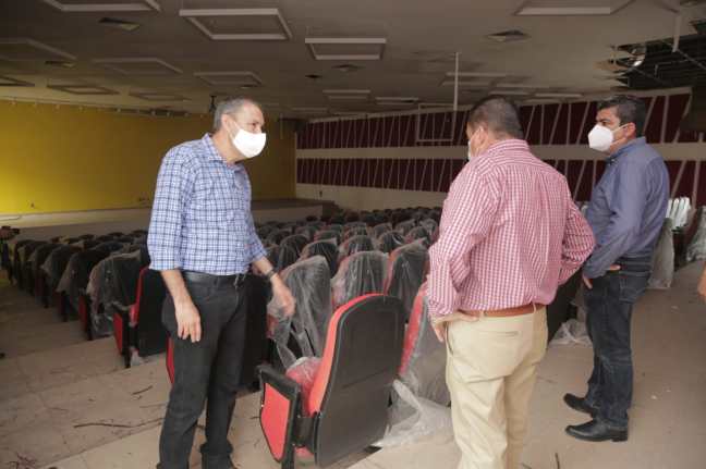 En representación del mandatario estatal, el secretario de Obras Públicas, Osbaldo López Angulo y el presidente municipal de Navolato, Eliazar Gutiérrez Angulo realizaron un recorrido por las instalaciones del edificio, para constatar el estado en que se encuentra la construcción.