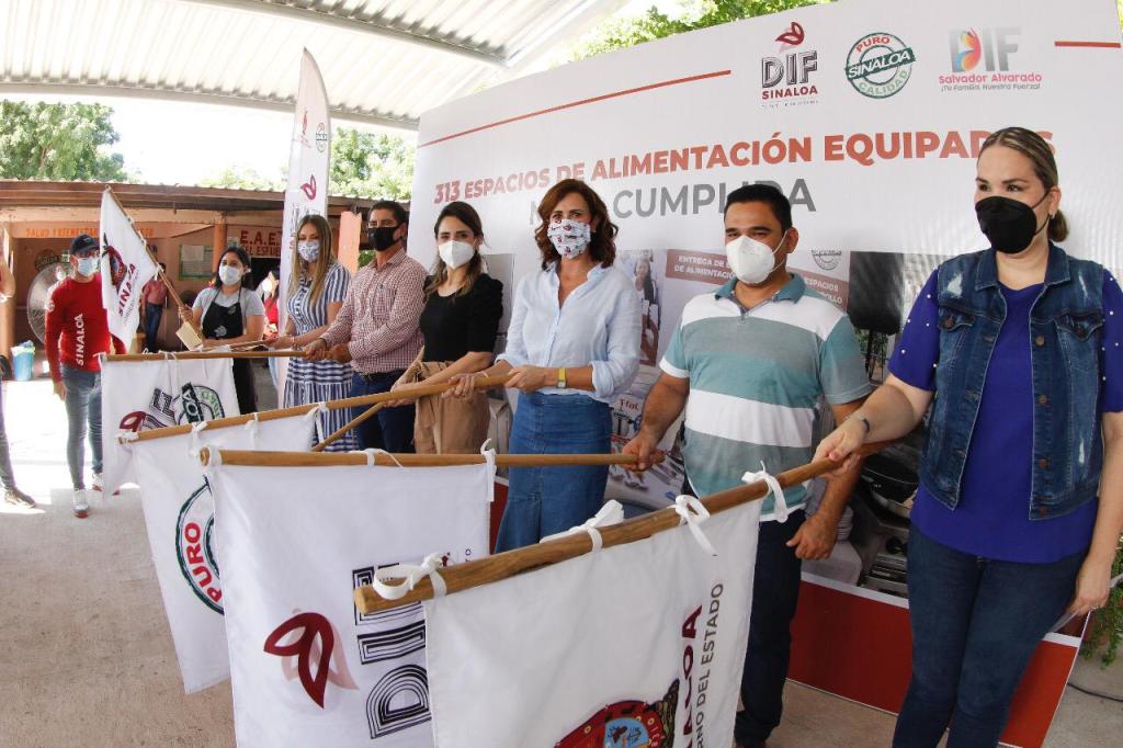 La presidenta de la institución dijo que hoy desde la comunidad La Escalera, del municipio de Salvador Alvarado, se cumple la meta de equipar los espacios, la cual se logró gracias al respaldo del gobernador del Estado, Quirino Ordaz Coppel: “declarar bandera blanca, porque ya terminamos de equipar los 313 Espacios de Alimentación que tenemos a lo largo del estado, sentimos mucho orgullo porque se invirtieron 15 millones de pesos que sirvieron para entregar todo el equipamiento, desde la estufa, refrigerador, ollas, todos los enseres domésticos”, expresó Rosy Fuentes.