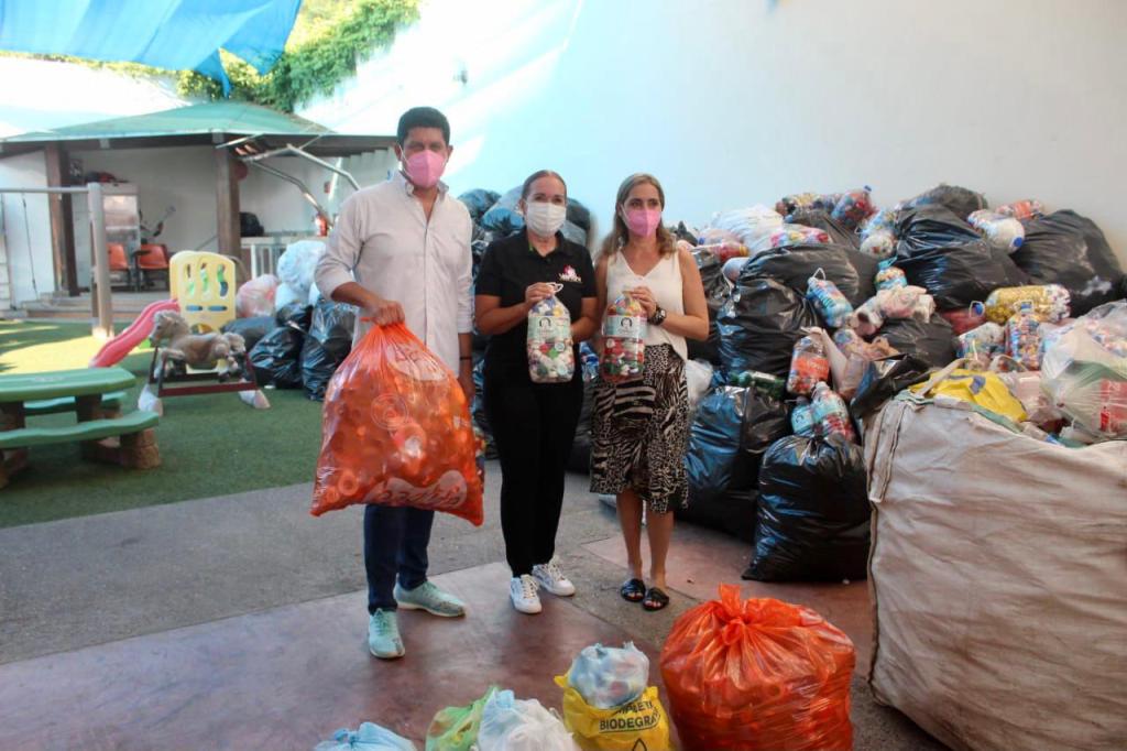 Señaló que “Recicla de Corazón” surgió en febrero a iniciativa de la Sra. Rosy Fuentes de Ordaz, con el apoyo de empresarios que aportaron los contenedores donde se recicla el plástico recibiendo una gran respuesta de la sociedad.