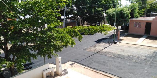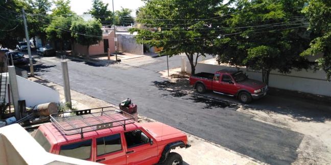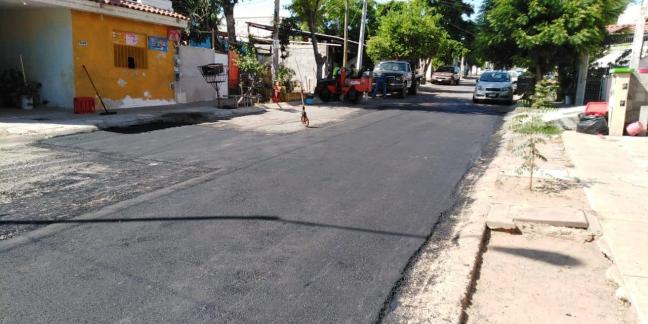 En este sentido, dichas labores continuaron en el fraccionamiento Los Ángeles, esto sobre la calle San Dimas, cruce con avenida La Sierra, donde se mejoró la carpeta asfáltica que presentaba numerosos problemas de baches, los cuales afectaban la circulación de la zona.