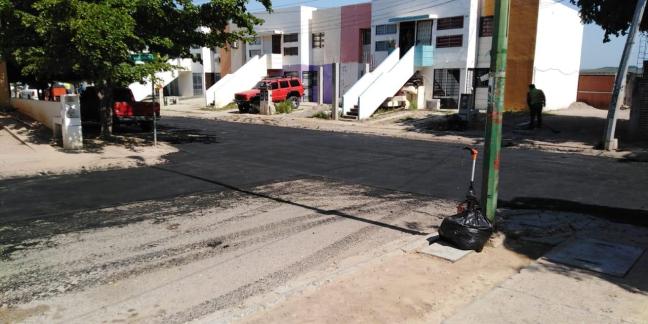 En este sentido, dichas labores continuaron en el fraccionamiento Los Ángeles, esto sobre la calle San Dimas, cruce con avenida La Sierra, donde se mejoró la carpeta asfáltica que presentaba numerosos problemas de baches, los cuales afectaban la circulación de la zona.