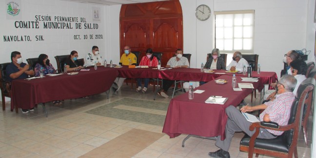 Navolato, Sinaloa. Ante los pronósticos de las autoridades de Salud de que pudiera darse un rebrote en los casos del COVID-19 en los próximos meses, el Comité Municipal de Salud que preside el alcalde Eliazar Gutiérrez Angulo se reunió esta mañana para declararse en sesión permanente y mantenerse muy pendientes sobre el comportamiento de las estadísticas de contagios, y estar preparados con las medidas preventivas y acciones para poder actuar de manera oportuna.