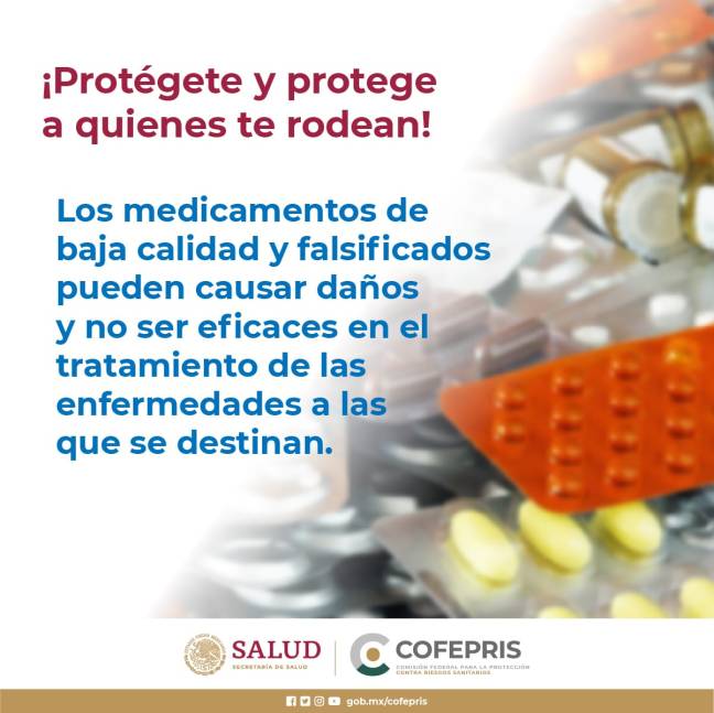 - En el marco de la Semana por la Seguridad de los Medicamentos que se celebra del 2 al 6 de noviembre, la Comisión Estatal para la Protección contra Riesgos Sanitarios de Sinaloa advierte que los medicamentos de baja calidad y falsificados pueden causar daños y no ser eficaces en el tratamiento de las enfermedades a las que se destinan