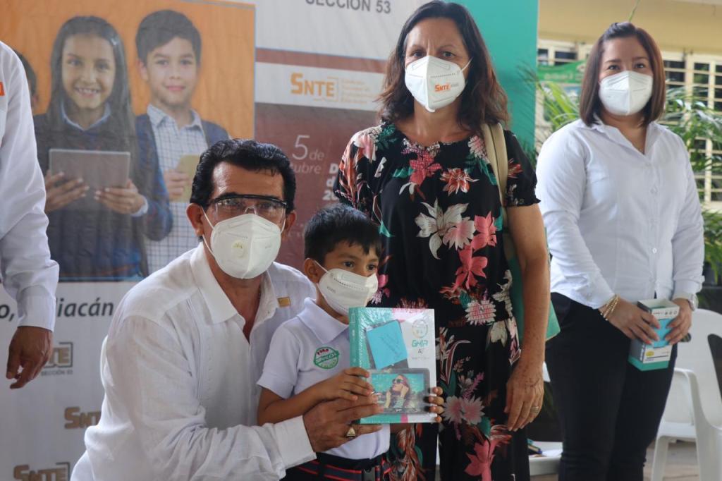 Detalló que los niveles de educación básica y media superior son quienes esta mañana recibieron, a través de las direcciones y supervisiones escolares, el apoyo tecnológico.