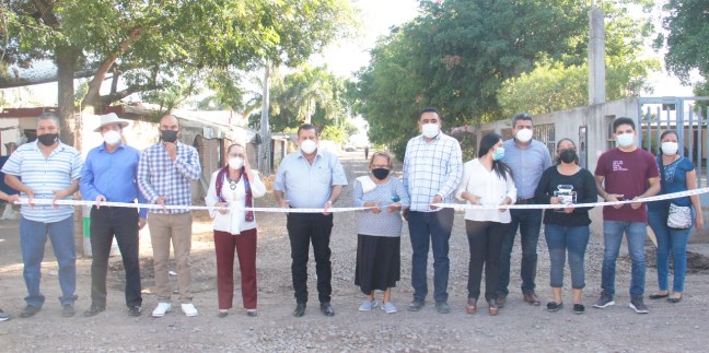 Navolato, Sinaloa. El presidente municipal de Navolato, Eliazar Gutiérrez Angulo, continúa entregando obras de beneficio social, y en esta ocasión inauguró el revestimiento de las calles principales de las comunidades Convención de Aguascalientes y La Curva, sindicatura de San Pedro.