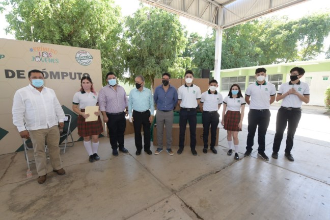 En el plantel Conalep “José Antonio Padilla Segura Culiacán II”, el titular de SEPyC estuvo acompañado por Melchor Angulo Castro, director general, así como por el director del plantel Marcos Muñoz, y la alumna Valentina Leyva, que habló a nombre de los beneficiados.