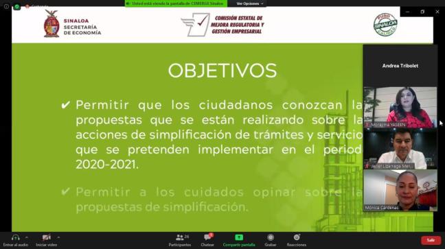 En la presentación de la Consulta Pública de los Programas de Mejora Regulatoria 2020-2021 participaron también la Sub Secretaria de Gestión de Fondos y Financiamiento, Morayma Yaseen Campomanes, la Directora General de la Comisión Estatal de Mejora Regulatoria y Gestión Empresarial, Mónica Iliana Cárdenas Delgado y el Presidente de Canirac Culiacán, Miguel Taniyama Ceballos.