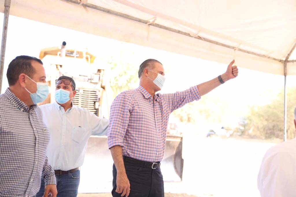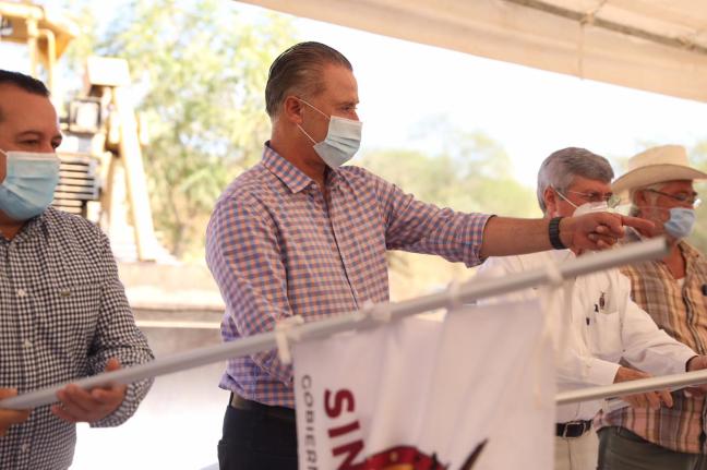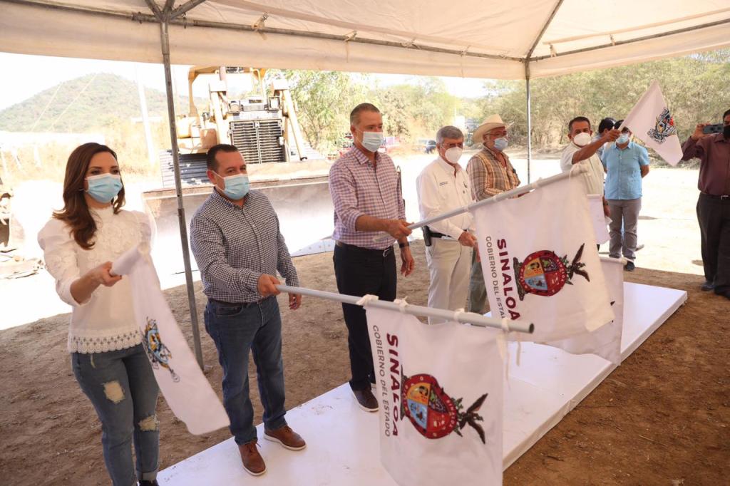 Acompañado por el presidente municipal de Mocorito, Guillermo Galindo Castro; su esposa, María Elizalde de Galindo; por el secretario de Obras Públicas, Osbaldo López Angulo; y por el secretario de Salud, Efrén Encinas Torres, el mandatario estatal dio el banderazo simbólico para el inicio de la pavimentación de los primeros mil 300 metros de esta carretera.