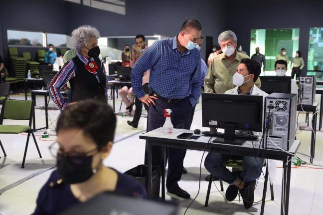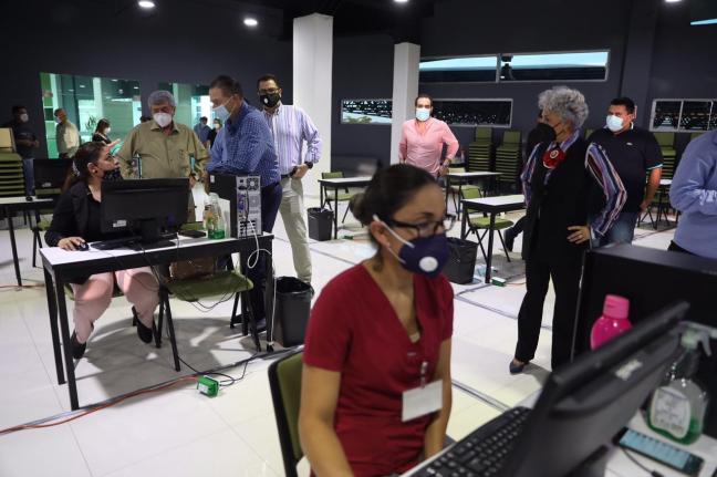 Culiacán, Sinaloa. Durante una visita que realizó al Call Center COVID de Culiacán, ubicado en las instalaciones de la Universidad Pedagógica del Estado de Sinaloa (UPES), el gobernador Quirino Ordaz Coppel hizo un reconocimiento al personal que ahí presta sus servicios, tanto médicos y psicólogos, quienes ya han atendido y dado seguimiento a más de 77 mil casos individuales desde que inició la pandemia.
