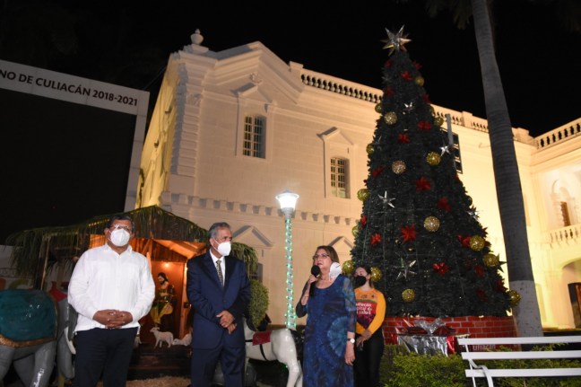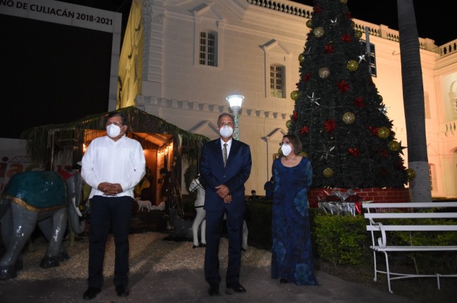 Culiacán, Sin. Para el presidente municipal Lic. Jesús Estrada Ferreiro, es importante mantener las tradiciones navideñas pese a la contingencia sanitaria que persiste, es por ello que, junto a su esposa y dirigente del Sistema DIF Culiacán Lupita López de Estrada, realizó el encendido del Árbol Navideño instalado al exterior del Ayuntamiento de Culiacán.