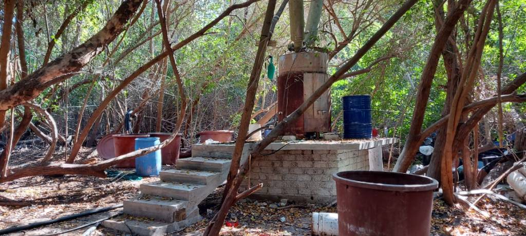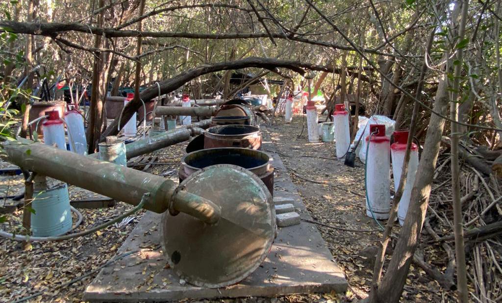 Al acercarse descubrieron entre la vegetación vestigios de la presencia de personas, además se encontraron bidones de color blanco y azul de los cuales, algunos contenían sustancias químicas, también había tanques de gas, generadores de energía, contenedores de diversos tamaños también con sustancias, tambos metálicos y reactores.