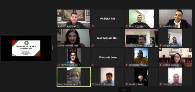 Vía zoom y ante la secretaria general de la CNOP nacional, Cristina Ruiz Sandoval; la secretaria general de la CNOP en Sinaloa, diputada Gloria Himelda Félix; Pedro Beristain, director nacional de AULATEC y Andrés Félix Zavala, secretario ejecutivo de la CNOP en Sinaloa; el padrino de generación, Jesús Valdés Palazuelos, presidente del PRI en Sinaloa felicitó a los egresados de esta primera generación por culminar sus estudios.