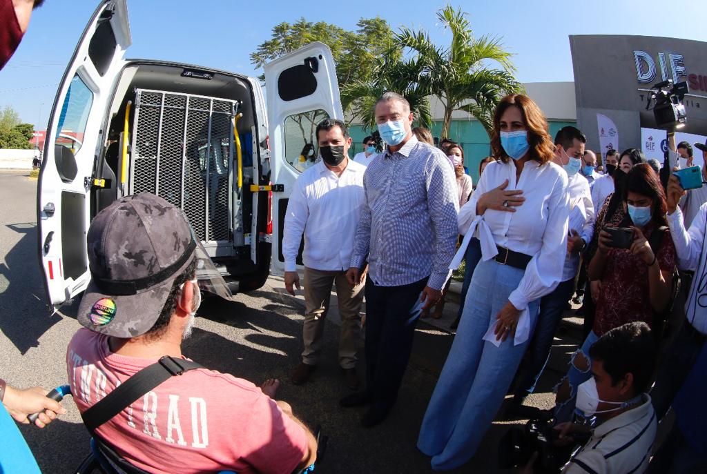 Culiacán Sinaloa. En el marco del Día Internacional de las Personas con Discapacidad, promoviendo la inclusión como lo ha hecho durante su administración, el gobernador Quirino Ordaz Coppel y su esposa Rosy Fuentes de Ordaz, presidenta del Sistema DIF Sinaloa, entregaron 13 unidades tipo Van para discapacitados a DIF municipales, los cuales serán distribuidos en Culiacán, Mazatlán, Ahome, Salvador Alvarado, Guasave, Rosario, Badiraguato, Angostura, Mocorito, Navolato, Cosalá, San Ignacio y Sinaloa Municipio, con el fin de facilitar el traslado de personas de escasos recursos a sus terapias.