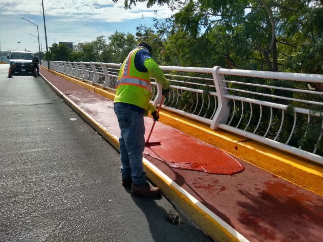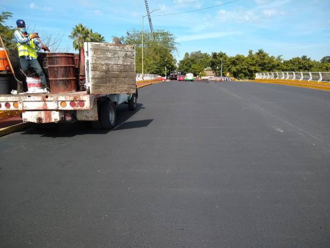 Los trabajos de rehabilitación que el Gobierno de Culiacán a través de la Secretaría de Obras y Servicios Públicos, inició recientemente en el Puente Morelos, concluyeron con la aplicación de pintura de señalización en la capa de rodamiento.