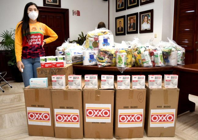 Culiacán, Sin. En la búsqueda de fortalecer las acciones que el Gobierno de Culiacán lleva a cabo para evitar la propagación del COVID-19, la Cadena Comercial OXXO S.A. de C.V. hizo entrega de alrededor de 10 mil cubrebocas para la campaña Guardianes de la Salud y 600 despensas alimenticias para el Sistema DIF Culiacán en beneficio de los sectores más vulnerables.