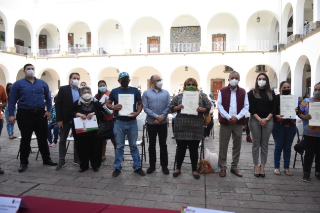 En el patio central de Palacio Municipal, el primer edil encabezó el acto en el que se citó a algunos de los beneficiados para brindar el documento con el que acreditarán la pertenencia legal de sus viviendas.