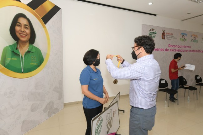 Mejía López destacó la labor realizada por Russell Noriega, quien desde el 2012 ha trabajado de manera constante para que Sinaloa se mantenga dentro del top ten en matemáticas y para promover el gusto por esta materia. Por esta razón fue reconocida con una medalla.