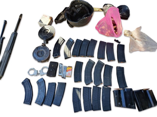 En la unidad, se hallaron cuatro armas de grueso calibre, de uso exclusivo del Ejército, una granada, además de cargadores, cartuchos de diferentes calibres, equipo de radiocomunicación, así como equipo táctico, entre ellos, chalecos, cascos y fornituras.
