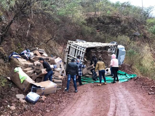 En el trayecto sufrieron un accidente de una de las unidades que llevaba apoyos alimenticios e invernales como cobijas, cobertores, etc en atención a los habitantes de las comunidades de Nogalito, San Miguel, Puerto de la Esperanza y otras de los alrededores.