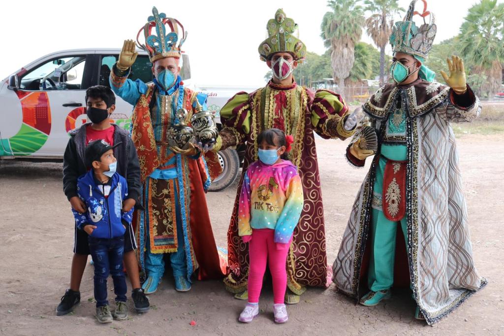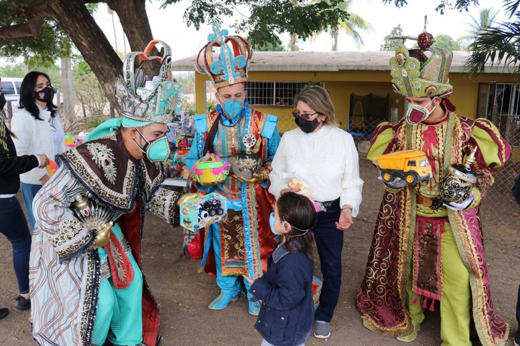 Culiacán, Sin. Los Reyes Magos Melchor, Gaspar y Baltazar, llegaron hoy a Costa Rica para repartir regalos a niñas y niños que habitan en comunidades y campos agrícolas de esta sindicatura.