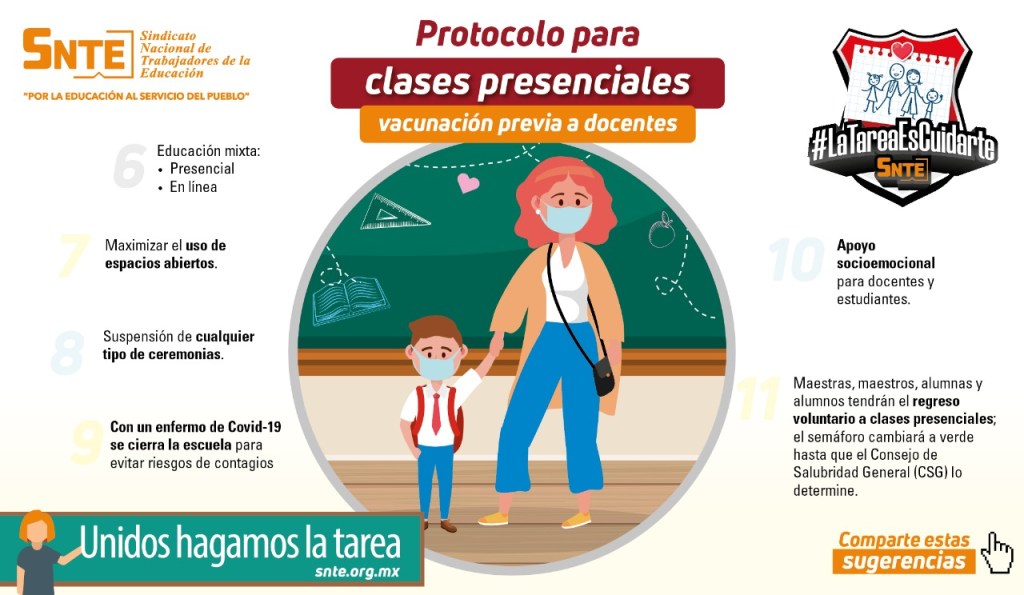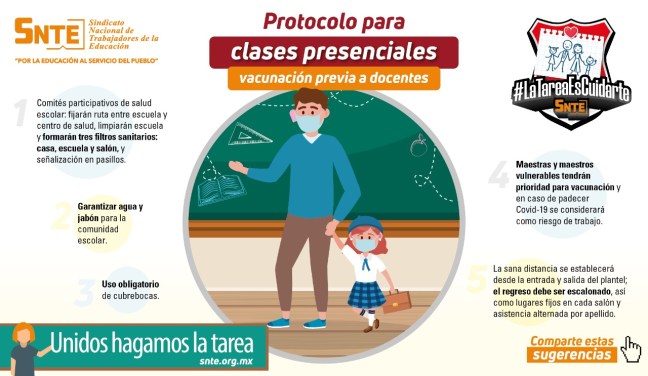 SNTEconMéxico Publicado el 12 enero, 2021 por cuateavena Para un #RegresoAClases 🏫 con Semáforo Verde 🟢🚦 hay un protocolo: Lo conoces❓ Entérate‼️ Además de ser voluntario y las medidas sanitarias, se priorizará la vacunación 💉👩🏫 contra el #coronavirus #COVID19 🦠 LaTareaEsCuidarte 🧑💻📝 SNTEsalud ⚕️ Compártelo: Compartir en X (Se abre en una ventana nueva) X Comparte en Facebook (Se abre en una ventana nueva) Facebook Me gusta Cargando... Relacionado