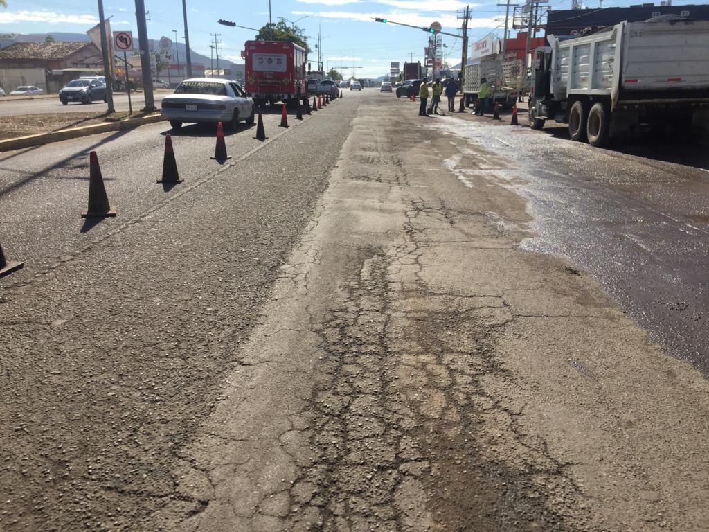 Parte de las labores realizadas por personal de la Secretaría de Obras y Servicios Públicos en dicha materia, consistieron en la rehabilitación del carril de acotamiento ubicado por la Calzada Heroico Colegio Militar en el sentido de norte a sur frente al Mercado de Abastos.