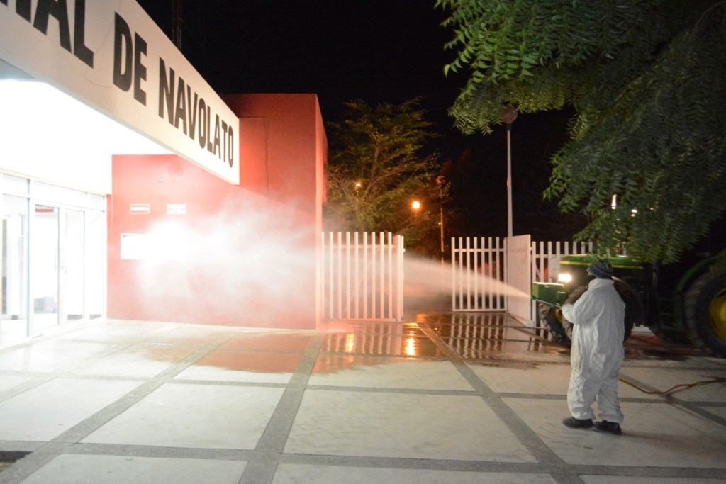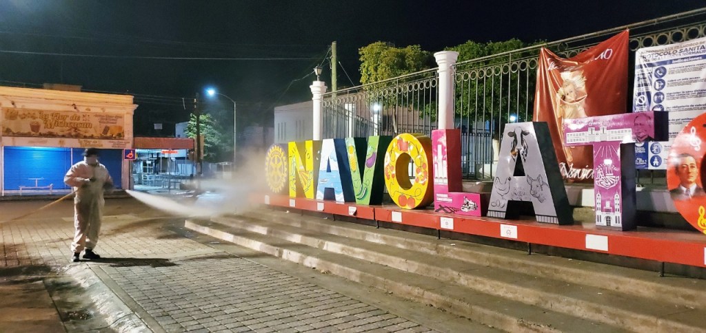 El alcalde navolatense explicó que desde hace aproximadamente tres semanas iniciaron de nuevo una campaña de sanitización en el Ayuntamiento, DIF, JAPAN, Escuela de Música, Biblioteca Pública Municipal, así como áreas donde se registra la mayor concentración de personas en la vía pública, supermercados, tiendas OXXO, mercado Miguel Hidalgo, plazuela Vicente Guerrero, paradas de camiones, entre otros sitios.