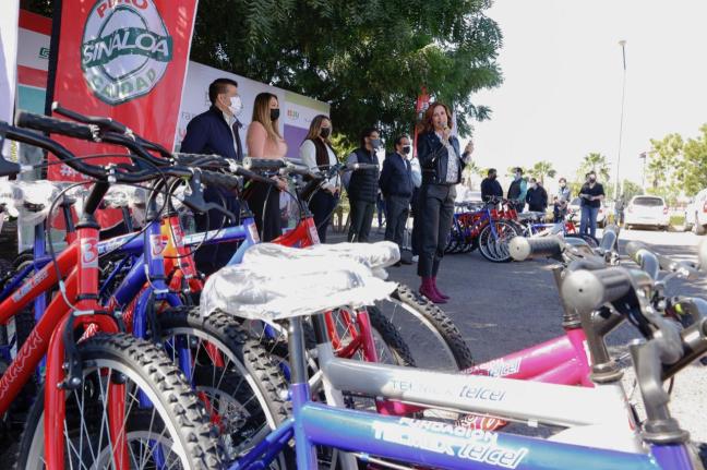 Culiacán, Sinaloa. “Cada institución siguiendo la indicación del gobernador Quirino Ordaz Coppel, da prioridad a la educación, esta es la puerta a un futuro mejor para nuestros niños y jóvenes; en DIF no nos quedamos atrás, seguimos gestionando más apoyos para el programa “Ayúdame a llegar”, con el que sumamos más de 5 mil 200 bicicletas entregadas a niños y jóvenes de todo el estado”, comentó Rosy Fuentes de Ordaz, presidenta de DIF Sinaloa, durante el arranque.