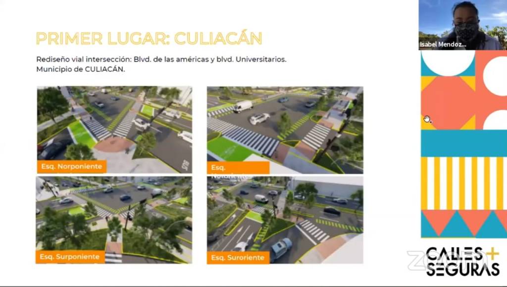 Dio a conocer que el primer lugar lo obtuvo Culiacán con el rediseño vial de la intersección del bulevar Las Américas y Universitarios, considerado uno de los cruceros más inseguros de la ciudad; se busca mejorar las condiciones de cruce de los peatones, espacios para el uso de la bicicleta, nuevas zonas de confort y arbolado.