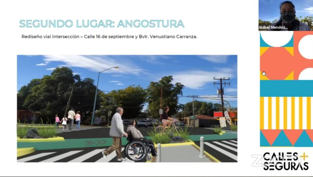 Agregó que el segundo lugar fue para Angostura por el rediseño vial de la intersección de la calle 16 de Septiembre y bulevar Venustiano Carranza, que atiende uno de los cruces más transitados de la ciudad; proponen crear más espacios para la seguridad del cruce peatonal y una nueva ciclovía, creando una calle completa para todas las personas.
