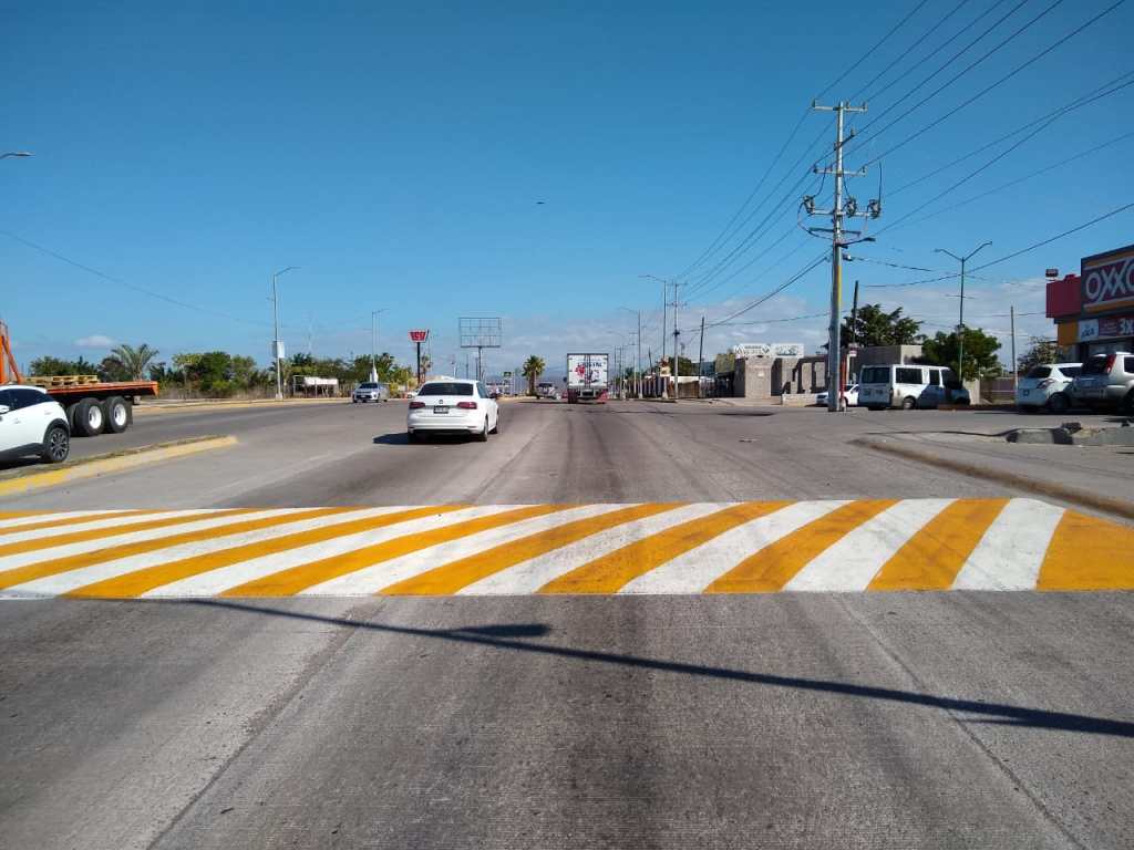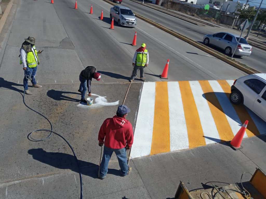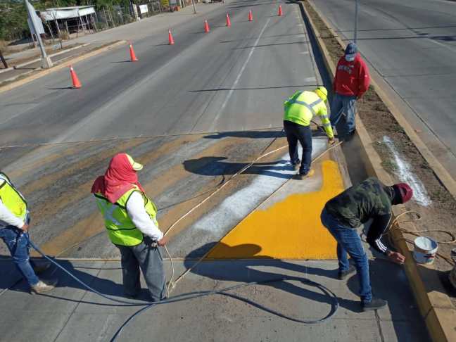 Durante esta semana personal de dicha Dirección realizó el retoque de pintura de reductores de velocidad y camellón central en el bulevar Francisco Labastida Ochoa y la carretera a Imala en el sector Los Ángeles.