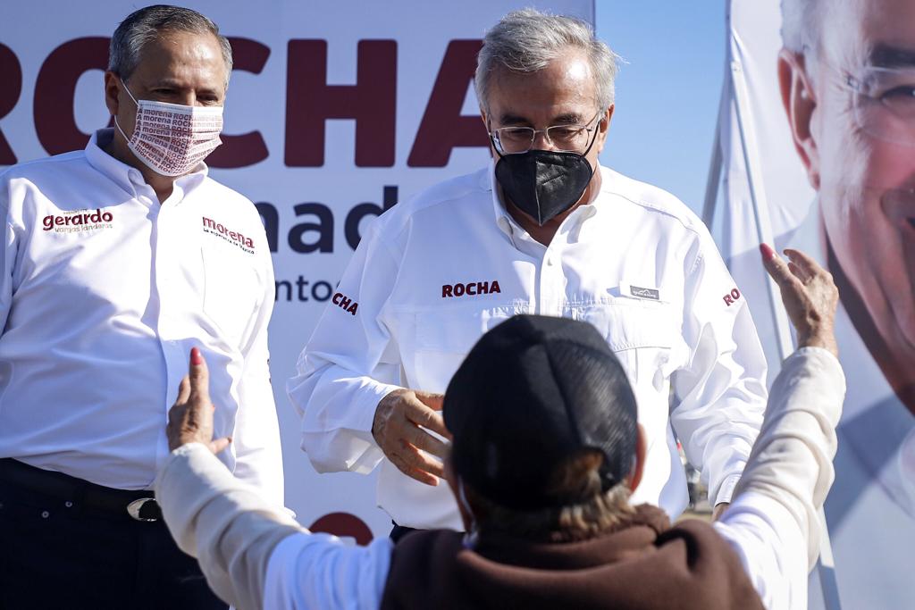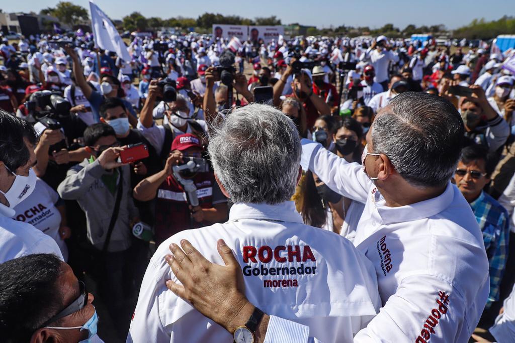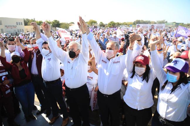 Los Mochis, Ahome, Sinaloa. En tanto, Rubén Rocha Moya, candidato a la gubernatura de Sinaloa por Morena-PAS convocó a los morenistas, pasistas, simpatizantes y ciudadanía de Ahome y todo el Estado, a dejar atrás los procesos internos del partido, para juntos hacer historia y transformar Sinaloa; el candidato a la presidencia municipal de Ahome, por ambos partidos, puntualizó “nosotros no sabemos el verbo ganar, nosotros conjugamos el verbo arrasar”.