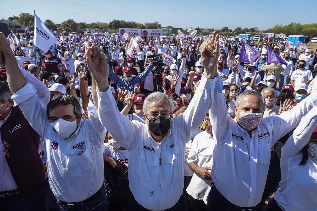 “Candidato Rubén Rocha, desprocupese de Ahome, tenemos un compromiso todos los candidatos, junto con la planilla de regidores para hacer un esfuerzo extraordinario, porque Ahome es tierra de Rubén Rocha, Ahome es tierra de Morena, Ahome es tierra del PAS”, destacó, entre aplausos y gritos de aceptación por parte de los asistentes.