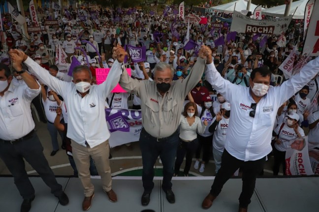 Costa Rica, Sinaloa. El candidato de la alianza Morena-PAS a la gubernatura de Sinaloa, Rubén Rocha Moya anunció que tras recorrer la mayoría de los municipios, en sus primeros cinco días de campaña, ya tiene el diagnóstico de los problemas del estado y los dos ejes para resolverlos son el combate a la corrupción y un gobierno austero.